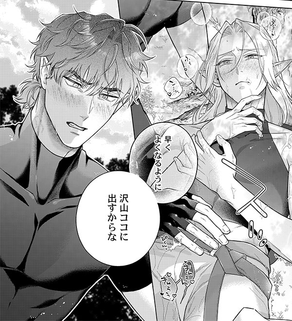また、エッチシーンの方向性としては、あまりにもエロくしすぎないことも大事です。個人的には、BLジャンルにおけるエッチシーンは少女漫画やTLに近いと考えているので、ある程度のエロさは意識しつつも、「雰囲気づくり」に重きを置いて描いています。