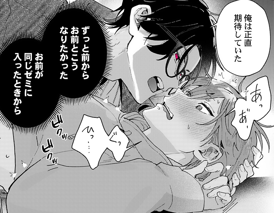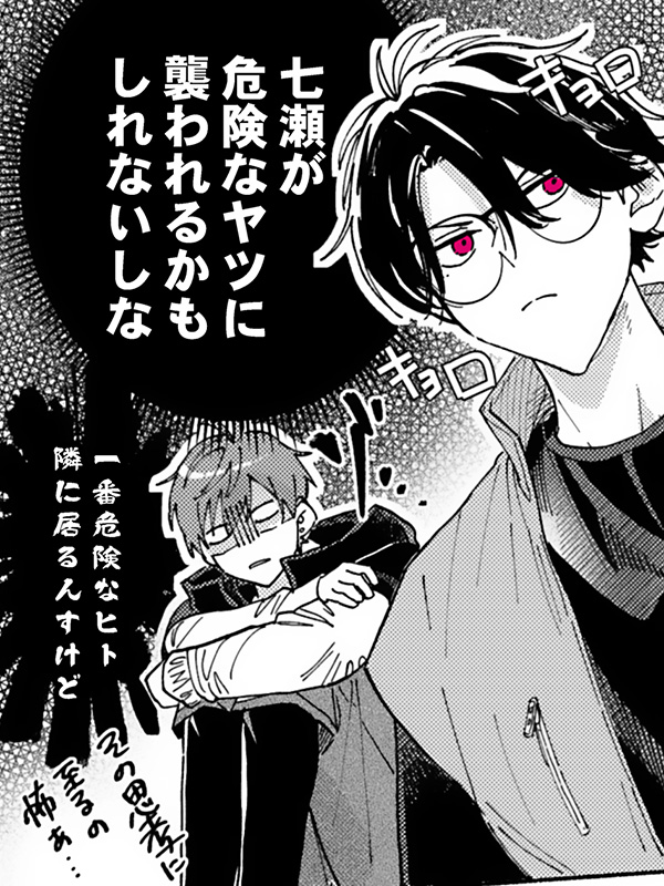 大好評連載中!『せんぱいは下心でいっぱい』は、頭を打ったことをきっかけに他人の心の声が聞こえるようになってしまった主人公・悠馬が、クールに見えて実は煩悩まみれだったゼミの先輩・要の本音と建前に翻弄されるBL作品です。要先輩の赤くギラつく瞳からは、主人公も読者も逃げられない…!?作者・時瀬よる先生に、本作について詳しくお伺いしました♪