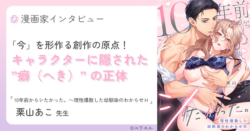 インタビュー栗山あこ先生インタビュー『10年前からシたかった。~理性爆散した幼馴染のわからせH』