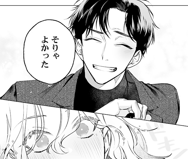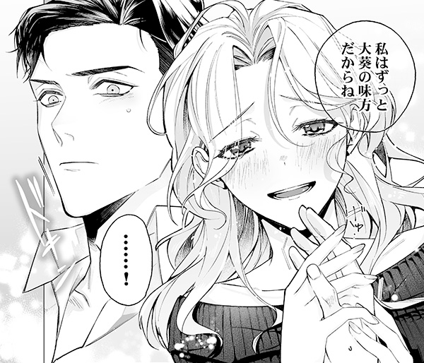 今のところ、メインはヒロインの京子とヒーローの大葵の二人で、どちらもお気に入りのキャラクターではありますが、作画的には大葵が気に入っています。私自身がガタイの良い男性と、体格差のあるカップリングが好きなので、大葵を描くときは線が細くなりすぎないように、特に首の太さなどを意識しながら描いています。また、大葵は仕事とプライベートで髪型に変化があるところも気に入っています。オンオフの印象の違いにも、ぜひ注目してみてください!